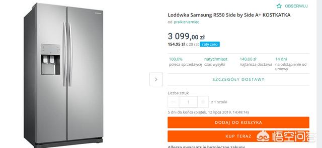 对开门冰箱,3099兹罗提,相当于人民币5639